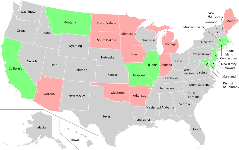 | Not legislated at the federal level, depends on state legislation[99][52] |