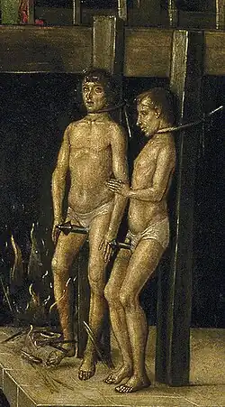Humiliation of one person by another (the humiliator) is often used as a way of asserting power over them, and is a common form of oppression or abuse used in a police, military, or prison context during legal interrogations or illegal torture sessions. Many now-obsolete public punishments were deliberately designed to be humiliating, e.g. tarring and feathering lawbreakers, pillory, "mark of shame" (stigma) as a means of "making an example" of a person and presenting a deterrent to others. Some practices, such as tarring and feathering, became tools of unofficial mob justice. In folk customs such as the English skimmington rides and rough music (and their continental equivalents, such as the French Charivari), dramatic public demonstrations of moral disapproval were enacted to humiliate transgressors and drive them out of the community.[8]
