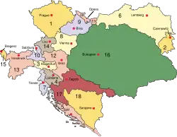 Wars of independence against the Habsburgs in 1703–1711 and 1848–1849 resulted in a compromise that established the Austro-Hungarian Monarchy in 1867, a major power in the early 20th century.[19] Austria-Hungary collapsed after World War I, and the subsequent Treaty of Trianon in 1920 established Hungary's current borders, resulting in the loss of 71% of its historical territory, majority of its economy, 58% of its population, and 32% of its ethnic Hungarians.[20][21][22]