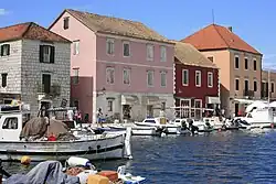 The 16th century was an unsettled time, with the Hvar Rebellion, coastal raids by pirates and the Ottoman army from the mainland, resulting in some unusual fortified buildings on the northern shore to protect the local population. After a brief time under Napoleonic rule, the island became part of the Austrian Empire, a more peaceful and prosperous time. On the coast, harbours were expanded, quays built, fishing and boat building businesses grew. At the same time, the island's wine exports increased, along with lavender and rosemary production for the French perfume industry. However, this prosperity did not continue into the 20th century as wooden sailing boats went out of fashion, and the phylloxera blight hit wine production. Many islanders left to make a new life elsewhere.[4][5][6]