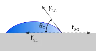 - ^ McHale, G.; Shirtcliffe, N. J.; Newton, M. I. (2004). "Contact-angle hysteresis on superhydrophobic surfaces: Hydrophobicity, hydrophilicity and Young's law". Langmuir. 20 (23): 10146–10149. doi:10.1021/la048629t.