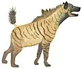 The list follows McKenna and Bell's Classification of Mammals for prehistoric genera (1997)[16] and Wozencraft (2005) in Wilson and Reeders Mammal Species of the World for extant genera.[17] The percrocutids are, in contrast to McKenna and Bell's classification, not included as a subfamily into the Hyaenidae, but as the separate family Percrocutidae, although they are generally grouped as sister-taxa to hyenas.[18] However, as of 2024 many experts consider them members of Hyaenidae.[19][20][21][22] Furthermore, the living brown hyena and its closest extinct relatives are not included in the genus Pachycrocuta, but in the genus Parahyaena. However, some research has suggested Parahyaena may be synonymous with Pachycrocuta, making the brown hyena the only extant member of this genus.[23]