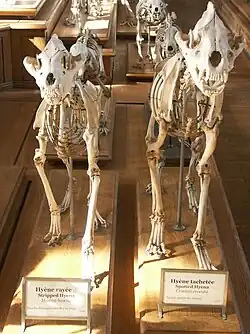 - ^ Coca-Ortega, C.; Pérez-Claros, J.A. (January 2019). "Characterizing ecomorphological patterns in hyenids: a multivariate approach using postcanine dentition". PeerJ. 6 e6238: 6:e6238. doi:10.7717/peerj.6238. PMC 6330948. PMID 30648005.