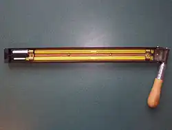 Accurate calibration of the thermometers used is fundamental to precise humidity determination by the wet-dry method. The thermometers must be protected from radiant heat and must have a sufficiently high flow of air over the wet bulb for the most accurate results. One of the most precise types of wet-dry bulb psychrometer was invented in the late 19th century by Adolph Richard Assmann (1845–1918);[14] in English-language references the device is usually spelled "Assmann psychrometer." In this device, each thermometer is suspended within a vertical tube of polished metal, and that tube is in turn suspended within a second metal tube of slightly larger diameter; these double tubes serve to isolate the thermometers from radiant heating. Air is drawn through the tubes with a fan that is driven by a clockwork mechanism to ensure a consistent speed (some modern versions use an electric fan with electronic speed control).[15] According to Middleton, 1966, "an essential point is that air is drawn between the concentric tubes, as well as through the inner one."[16]