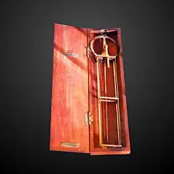 Other techniques were applied using mass to measure humidity, such as when the air was dry, the bar of charcoal would be light, while when the air was humid, the bar of charcoal would be heavy. By hanging a lump of earth on one end of a staff and a bar of charcoal on the other end and attaching a fixed lifting string to the middle point to make the staff horizontal in dry air, an ancient hygrometer was made.[3][2]