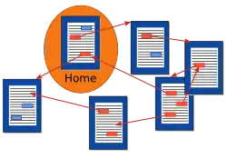 Visual abstraction of several documents being connected by hyperlinks