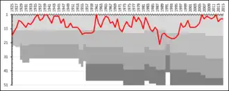 The club's homeground Borås Arena is also called Elfsborg Fortress,[10] since Elfsborg is Allsvenskan home strongest team in the 2000s (decade).[11] It is one of two teams in Allsvenskan that has won against the Sweden national team[12] with 2–1 in the opening ceremony of Ryavallen (the other team is AIK 1979 with 3–2[13]) and one of only two teams to win Allsvenskan as newcomers in 1961, the other team was Östers IF in 1968.[14] Elfsborg have repeatedly participated for the qualifier to Champions League, Europa League and was as late as 2007 in 2007–08 UEFA Cup[15] and was one of the co-winners in 2008 UEFA Intertoto Cup the following year. The club have won six national championships, the latest in 2012, and three national cups.[16]