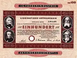 - I.G. Farbenindustrie AG (1925–1945) from the IG Farben successor Bayer