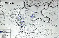 The Americans seized the company's property under "General Order No. 2 pursuant to Military Government Law No. 52", 2 July 1945, which allowed the US to disperse "ownership and control of such of the plants and equipment seized under this order as have not been transferred or destroyed". The French followed suit in the areas they controlled.[65] On 30 November 1945, Allied Control Council Law No. 9, "Seizure of Property owned by I.G. Farbenindustrie and the Control Thereof", formalized the seizure for "knowingly and prominently ... building up and maintaining German war potential".[66][1] The division of property followed the division of Germany into four zones: American, British, French and Soviet.[65]