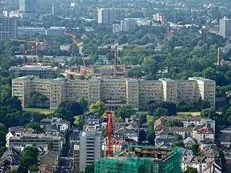![]() IG Farben Building, Frankfurt, completed in 1931 and seized by the Allies in 1945 as the headquarters of the Supreme Allied Command. In 2001 it became part of the University of Frankfurt. | |