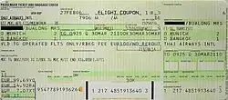 An airline ticket showing the price with ISO 4217 code "EUR" (bottom left) and not with euro currency sign ""