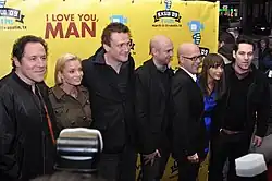 I Love You, Man is the third collaboration between Paul Rudd and Jason Segel, following the Judd Apatow projects Knocked Up and Forgetting Sarah Marshall, while writer/director Hamburg previously worked with Segel on Apatow's Undeclared television series.[9] It only took one lunch to get Segel and Rudd to sign on to do the film and this set the stage for other actors to sign on.[10] On February 13, 2008 it was announced that Rashida Jones would be the female lead opposite Rudd.[11] Later, in an interview with FirstShowing.net, Jones revealed that because Segel and Rudd were already attached to the project she "knew immediately that it was gonna be even funnier than I would think."[12] At the beginning of the March 31, 2008 week, The Hollywood Reporter announced that Jaime Pressly had joined the film's cast, playing the best friend of Rashida Jones' character.[13] Hamburg comically stated that he was lucky in casting J.K. Simmons because his contract states "he has to be in one out of every four movies made."[14] Jon Favreau started working on the film the same week Iron Man came out, a film which he directed. He said he "probably wouldn't have agreed to have done it had I known my life was going to be that shape", but Iron Man star Robert Downey Jr. told him that "It is the best thing you could do" – he said 'chop wood, carry water,' which is what they do in the Kung Fu movies to keep you humble."[15]