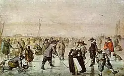 Ice is "slippery" because it has a low coefficient of friction. This subject was first scientifically investigated in the 19th century. The preferred explanation at the time was "pressure melting" – i.e. the blade of an ice skate, upon exerting pressure on the ice, would melt a thin layer, providing sufficient lubrication for the blade to glide across the ice.[36] Yet, research in 1939 by Frank P. Bowden and T. P. Hughes found that skaters would experience a lot more friction than they actually do if it were the only explanation. Further, the optimum temperature for figure skating is −5.5 °C (22 °F; 268 K) and −9 °C (16 °F; 264 K) for ice hockey; yet, according to pressure melting theory, skating below −4 °C (25 °F; 269 K) would be outright impossible.[37] Instead, Bowden and Hughes argued that heating and melting of the ice layer is caused by friction. However, this theory does not sufficiently explain why ice is slippery when standing still even at below-zero temperatures.[36]