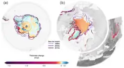 150. ^ a b c d e Slater, Thomas; Lawrence, Isobel R.; Otosaka, Inès N.; Shepherd, Andrew; Gourmelen, Noel; Jakob, Livia; et al. (25 January 2021). "Review article: Earth's ice imbalance". The Cryosphere. 15 (1): 233–246. Bibcode:2021TCry...15..233S. doi:10.5194/tc-15-233-2021. hdl:20.500.11820/df343a4d-6b66-4eae-ac3f-f5a35bdeef04. This article incorporates text from this source, which is available under a Creative Commons Attribution 4.0 International License.