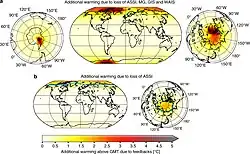 159. ^ Dai, Aiguo; Luo, Dehai; Song, Mirong; Liu, Jiping (10 January 2019). "Arctic amplification is caused by sea-ice loss under increasing CO2". Nature Communications. 10 (1): 121. Bibcode:2019NatCo..10..121D. doi:10.1038/s41467-018-07954-9. PMC 6328634. PMID 30631051.