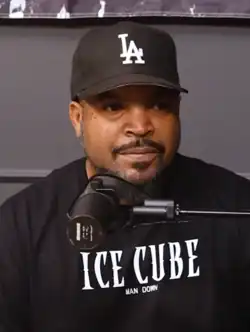 A native of Los Angeles, Ice Cube formed his first rap group called C.I.A. in 1986.[10] In 1987, with Eazy-E and Dr. Dre, he formed the gangsta rap group N.W.A.[10] As its lead rapper, Ice Cube also wrote most of the lyrics on Straight Outta Compton,[3][5] a landmark album that shaped West Coast hip-hop's early violent and controversial identity and helped differentiate it from East Coast rap.[4][3][10] After a monetary dispute over the group's management by Eazy-E and Jerry Heller, Ice Cube left N.W.A in late 1989 and embarked on a solo career, releasing eleven albums, with seven charting within the top-10 on the U.S. Billboard 200. His singles "Straight Outta Compton", "It Was a Good Day", "Check Yo Self", "You Know How We Do It", "Bop Gun (One Nation)", "Pushin' Weight", and "You Can Do It" all charted in the top-40 on the U.S. Billboard Hot 100.[10]