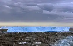 This type of iceberg, also known as an ice island,[25] can be quite large, as in the case of Pobeda Ice Island. Antarctic icebergs formed by breaking off from an ice shelf, such as the Ross Ice Shelf or Filchner–Ronne Ice Shelf, are typically tabular. The largest icebergs in the world are formed this way.
