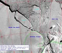 - ^ "New Iceberg Breaks off Ronne Ice Shelf in Antarctica". NOAA. 15 October 1998. Retrieved 2011-03-09.