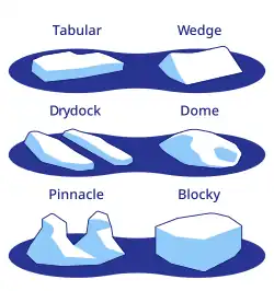Non-tabular icebergs have different shapes and include:[26]
