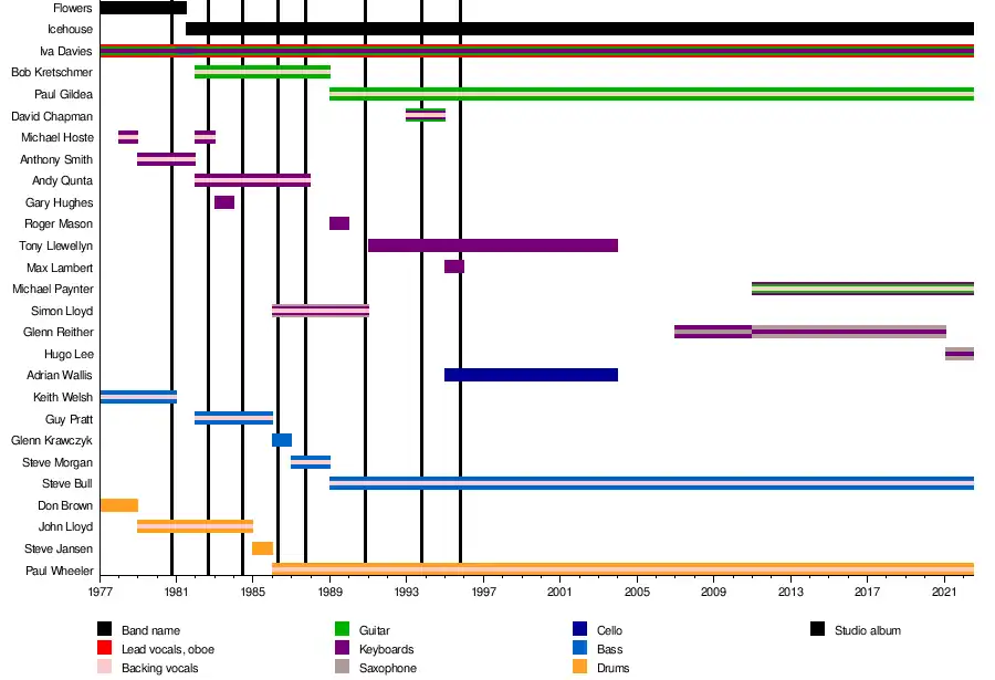 2. ^ a b c d e f g h i j k l m n o p q r s Holmgren, Magnus. "The Flowers / Icehouse". Australian Rock Database. Passagen.se (Magnus Holmgren). Archived from the original on 29 September 2013. Retrieved 21 March 2014.