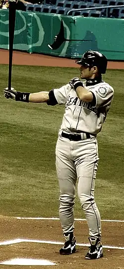 In 2000, Suzuki was still a year away from being eligible for free agency, but the Blue Wave was no longer among Japan's best teams. Because the team would probably not be able to afford to keep him and would lose him without compensation in another year, Orix allowed him to negotiate with Major League clubs. Suzuki used the posting system, and the Seattle Mariners won the right to negotiate with him with a bid of approximately $13 million.[19] In November, Suzuki signed a three-year, $14 million contract with the Seattle Mariners. In his nine NPB seasons in Japan, Suzuki had 1,278 hits, a .353 career batting average, and won seven Golden Glove Awards. Suzuki's time in the Japanese baseball leagues matured him as a player and a person, and he often credits it for his success.