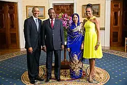In September 2005, Déby married Hinda (born 1977), who was reputed for her beauty.[1] This marriage attracted much attention in Chad, and due to tribal affiliations it was seen by many as a strategic means for Déby to bolster his support while under pressure from rebels.[101] Though she was not Déby's oldest or newest wife, Hinda Déby was considered the "First Lady of Chad" due to her influential positions in government and politics.[1] Hinda was a member of the Civil Cabinet of the Presidency, serving as Special Secretary.[102] The daughter of a top Chadian diplomat, Hinda Déby Itno has dual Chadian and French citizenship.[100] She and Déby had five children, all born in Neuilly-sur-Seine, who also hold French nationality.[100]