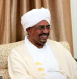 During the Chad–Sudan conflict, Sudanese president Omar al-Bashir supported any rebel group fighting against the Chadian government, and the proxy war saw opposition fighting on both sides. Déby visited Khartoum in February 2010 and the leaders would meet again in July 2010 when Bashir visited N'Djamena. These meetings resulted in Chad kicking out rebels while both countries committed to joint border patrols.[44][45] After Déby won the 2011 Chadian presidential election, Omar al-Bashir decided to visit N'Djamena to attend his inauguration in August. Even though Chad was technically able to arrest al-Bashir, it and other African states declined to do so.[46]