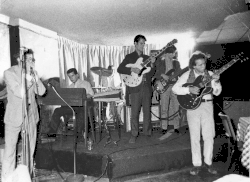 Osterberg eventually dropped out of the University of Michigan[28] and moved to Chicago to learn more about blues. While in Chicago, he played drums in blues clubs, helped by Sam Lay (formerly of the Paul Butterfield Blues Band) who shared his connections with Pop.[29] Inspired by Chicago blues as well as bands like the Sonics, MC5 and the Doors, he formed the Psychedelic Stooges. The band was composed of Osterberg on vocals, Ron Asheton on guitar, Asheton's brother Scott on drums, and Dave Alexander on bass. Their first show was played at a Halloween party at a house in Detroit, Michigan. Members of the MC5 were also in attendance. Osterberg became interested in Ron Asheton after seeing him perform in the Chosen Few (a covers band), believing "I've never met a convincing musician that didn't look kind of ill and kind of dirty, and Ron had those two things covered!"[30] The three nicknamed Osterberg "Pop" after a local character named Jim Popp,[31] who he was said to have resembled after shaving his eyebrows.[32]