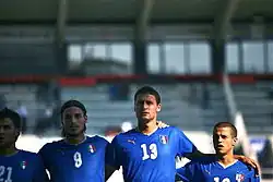 The Constitution, finished in 1948, determined the national flag, but did not establish a national anthem or emblem; the latter was adopted by legislative decree on 5 May.[65] A draft constitutional law prepared immediately afterwards sought to insert, after discussion of the national flag, the sentence "The Anthem of the Republic is the 'Il Canto degli Italiani'". This law stalled as well.[66]
