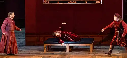 In 1990 Tulsa Opera presented the first staging of Le trouvère in the United States using a new critical edition by musicologist, conductor, and Verdi scholar David Lawton.[31] Recorded live for broadcast on NPR, Lawton conducted the premiere with Margaret Jane Wray as Leonore, Craig Sirianni as Manrique, Greer Grimsley as Le Comte de Luna, Barbara Conrad as Azucena, and the Tulsa Philharmonic.[31][32] This version was published by Ricordi and the University of Chicago Press in 2001.[33] An updated version of this critical edition by Lawton was published by Ricordi in 2018, and given its premiere at the Festival Verdi in Parma that same year.[34]