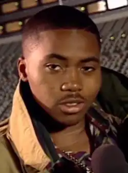 As a teenager, Nas wanted to pursue a career as a rapper and enlisted his best friend and neighbor, Willy "Ill Will" Graham, as his DJ.[9] Nas initially went by the nickname "Kid Wave" before adopting the alias "Nasty Nas".[9] At the age of fifteen, he met producer Large Professor from Flushing, Queens, who introduced him to his group Main Source. Nas made his recorded debut with them on the opening verse on "Live at the Barbeque" from their 1991 album Breaking Atoms.[10] Nas made his solo debut on his 1992 single "Halftime" for the soundtrack to the film Zebrahead. The single added to the buzz surrounding Nas, earning him comparisons to the highly influential golden age rapper Rakim.[11] Despite his buzz in the underground scene, Nas did not receive an offer for a recording contract and was rejected by major rap labels such as Cold Chillin' and Def Jam Recordings.[10] Nas and Ill Will continued to work together, but their partnership was cut short when Graham was murdered by a gunman in Queensbridge on May 23, 1992;[12] Nas' brother was also shot that night, but survived. Nas has cited that moment as a "wake-up call" for him.[13]