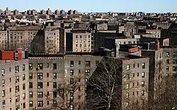 Many of the themes found in Illmatic revolve around Nas' experience living in an environment where poverty, violence, and drug use abound. Throughout the 1980s and early 1990s, residents of Queensbridge experienced intense violence, as the housing development was overrun by the crack epidemic. Illmatic contains imagery inspired by the prevalence of street crime. In "N.Y. State of Mind", Nas details the trap doors, rooftop snipers, street corner lookouts, and drug dealers that pervade his urban dreamscape.[33] Sohail Daulatzai describes this language as "chilling" and suggests that it "harrowingly describes and imagines with such surreal imagery, with so much noir discontent and even more fuck-you ambition, the fragile and tenuous lives of ghetto dwellers..."[28] Author Adam Mansbach interprets Nas' violent aesthetics as a metaphoric device meant to authenticate the rough edges of his persona: "Nas's world and worldview are criminal and criminalized. Hence, he uses metaphoric violence as a central trope of his poetic."[34] Writer and musician Gregory Tate regards this violent imagery as part of a trend towards dark subject matter that came to prevail among East Coast rappers in the hardcore hip-hop scene. He writes, "[S]ome of the most memorably dark, depressive but flowing lyrics in hip-hop history were written by Nas, Biggie, and members of the Wu-Tang Clan on the death knell of the crack trade."[35]