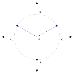 When multiplied by the imaginary unit i, any arbitrary complex number in the complex plane is rotated by a quarter turn ( radians or 90°) anticlockwise. When multiplied by −i, any arbitrary complex number is rotated by a quarter turn clockwise. In polar form: