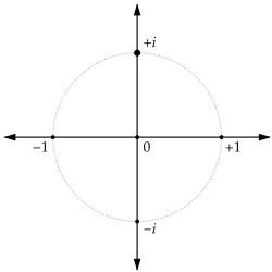 Thus, under multiplication, i is a generator of a cyclic group of order 4, a discrete subgroup of the continuous circle group of the unit complex numbers under multiplication.