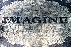 "Imagine" is a song by the English musician John Lennon from his 1971 album of the same name. The best-selling single of his solo career, the lyrics encourage listeners to imagine a world of peace, beginning with living without religion and its concepts, without economic materialism, and without borders separating nations. Shortly before his death, Lennon said that much of the song's lyrics and content came from his wife, Yoko Ono, and in 2017, she received a co-writing credit.[2][3][4]
