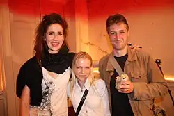 By September 2009, Heap was the 117th most-followed user overall on Twitter, with more than 960 thousand followers.[103] She was featured on the song "My Secret Friend" by IAMX from his 2009 album Kingdom of Welcome Addiction and contributed vocals to Mika's song "By the Time" from his album The Boy Who Knew Too Much, released in September 2009.[123][124] Also that month, she performed "First Train Home" on the Late Show with David Letterman.[125] She won the Ivor Novello Award for International Achievement in May 2010.[126] She went on tour in 2010, starting in Los Angeles and performing at V Festival, Coachella, and Ilosaarirock.[127][128][129] She auditioned musicians for the tour using the livestreaming service Vokle, which she later promoted at Midem and invested seed money in the following year.[8][130] The seventh leg of the tour took place in the UK in the fall of 2010.[121] It included a performance at the Royal Albert Hall, where she premiered Love the Earth, a short nature documentary created and scored by her, which consisted of clips sent in by fans of "why they love the Earth".[131][132]