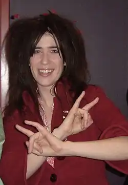 Heap is also known for her contributions to film and television soundtracks.[15][59] She became known as an early adoptee of social media, particularly Twitter, Myspace, and vlogging, to promote her music and interact with her fans.[246][38] She has expressed praise toward social media's role in music, stating in 2010 that, because of it, "anyone and everyone can get creative and get their voice heard".[132] She is also known for her devoted fanbase, with Ian Youngs describing them for BBC News as "substantial" and "among the most devoted and active in music" in 2010.[127] A 2012 YouGov poll of her fans found that more than half of the respondents lived in the United States, more than three-fourths were born after 1975, and slightly more than half were male.[247] Her renewed success in 2025 through the online popularity of "Headlock" led to an influx of Gen Z fans of her music.[34] Her fashion style has been described as "kooky",[6] "theatrical",[248] "weird",[249] and "flamboyant". Cory Albertson of Paste described her as having "an outlandish visual persona".[86] Her frog-themed outfit at the 49th Annual Grammy Awards has been included on several lists of the most outrageous and iconic Grammys outfits of all time.[250][251][252][253]