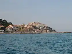 Porto Maurizio was a Roman settlement, Portus Maurici, which, though named in the brief maritime itinerary appended to the Antonine Itinerary,[4] must be an interpolation in manuscripts of that third century document, since it is named after Saint Maurice, leader of the Theban Legion who were not martyred until 286 and could not have been memorialized until the Christianized Empire of the fourth century.[5] It became a Byzantine port after the Gothic Wars of the 6th century, then passed to the Order of Saint Benedict. It was subject to the counts of Turin in the 11th century, and then to the marchesi of Clavesana. Boniface of Clavesana sold the town to the Republic of Genoa in 1288[6] in return for a yearly payment,[3] as part of Genoa's expansion into western Liguria. In 1354 it became the seat of the Genoese vicar of the western Riviera.[3] The town prospered even though control of Genoa passed between the French, the Duchy of Milan, and the Spanish. During the Napoleonic Wars Napoleon Bonaparte himself stopped for a night in Porto Maurizio and spent the night on the Parrasio on the third floor of Palazzo Lavagna. At the Congress of Vienna in 1815, it was awarded to the Kingdom of Sardinia, before finally joining a united Italy in 1861.