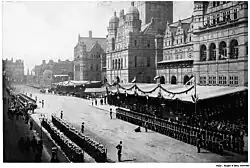 In 1881, the Normal School of Science was established in South Kensington under the leadership of Thomas Huxley, taking over responsibility for the teaching of the natural sciences and agriculture from the Royal School of Mines.[23] The school was renamed the Royal College of Science by royal consent in 1890.[24] The Central Institution of the City and Guilds of London Institute was opened as a technical education school on Exhibition Road by the Prince of Wales in 1884, with courses beginning in 1885.[12]