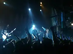 In Flames is a Swedish heavy metal band from Gothenburg, formed in 1990. They are considered one of the pioneering acts of the Gothenburg metal scene, which also includes bands such as At the Gates and Dark Tranquillity. Their lineup has changed several times, with vocalist Anders Fridén and lead guitarist Björn Gelotte being the only consistent members since 1995.[1] Since the departure of Strömblad in 2010, no original members remain with the band. The band has sold over two million records worldwide.[2]
