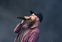 In Flames began recording their eleventh studio album in August 2013.[32] On 10 April 2014, the In Flames website appeared to have been hacked. The alleged hacker threatened to leak information the next day. The band posted on its Facebook, saying, "We have encountered some issues regarding our online platforms. We want to assure you that no Jesterhead member information has been compromised, and our team is working on a solution right now. We apologize for the inconvenience."[33] However, the site was not really hacked.[34] The following day, the band's website was updated with a link to the supposed leak. A short video announced that the new album will be titled Siren Charms.[14] The album was released on 9 September 2014, via the band's new label, Epic Records.[35] Siren Charms includes vocals recorded by fans.[36] Following release of the album they started a World tour, set to last throughout 2015. On 12 October 2014 the band officially announced on their Facebook page that they are to release a brand new Live Blu-ray/DVD and CD set based on their show in Gothenburg, which took place in November 2014 and was officially released on 23 September 2016 titled 'Sounds from the Heart of Gothenburg'. Longtime drummer Daniel Svensson announced his departure from the band to focus on his family life on 7 November 2015.