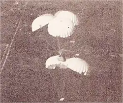 Within the first two weeks, the IAF had carried out almost 12,000 sorties over East Pakistan and also provided close air support to the advancing Indian Army.[52] IAF also assisted the Indian Navy in its operations against the Pakistani Navy in the Bay of Bengal and Arabian Sea. On the western front, the IAF destroyed more than 20 Pakistani tanks,[53] 4 APCs and a supply train during the Battle of Longewala.[54] The IAF undertook strategic bombing of West Pakistan by carrying out raids on oil installations in Karachi, the Mangla Dam and a gas plant in Sindh.[55] Similar strategy was also deployed in East Pakistan and as the IAF achieved complete air superiority on the eastern front, the ordnance factories, runways, and other vital areas of East Pakistan were severely damaged.[56] By the time Pakistani forces surrendered, the IAF destroyed 94 PAF Aircraft[57] The IAF was able to conduct a wide range of missions – troop support; air combat; deep penetration strikes; para-dropping behind enemy lines; feints to draw enemy fighters away from the actual target; bombing; and reconnaissance. In contrast, the Pakistan Air Force, which was solely focused on air combat, was blown out of the subcontinent's skies within the first week of the war. Those PAF aircraft that survived took refuge at Iranian air bases or in concrete bunkers, refusing to offer a fight.[58] Hostilities officially ended at 14:30 GMT on 17 December, after the fall of Dacca on 15 December. India claimed large gains of territory in West Pakistan (although pre-war boundaries were recognised after the war), and the independence of Pakistan's East wing as Bangladesh was confirmed. The IAF had flown over 16,000 sorties[52] on both East and West fronts; including sorties by transport aircraft and helicopters.[52] while the PAF flew about 30 and 2,840. More than 80 per cent of the IAF's sorties were close-support and interdiction, and according to neutral assessments about 45 IAF Aircraft were lost while, Pakistan lost 75 aircraft.[59] Not including any F-6s, Mirage IIIs, or the six Jordanian F-104s which failed to return to their donors. But the imbalance in air losses was explained by the IAF's considerably higher sortie rate, and its emphasis on ground-attack missions. On the ground Pakistan suffered most, with 9,000 killed and 25,000 wounded while India lost 3,000 dead and 12,000 wounded. The loss of armoured vehicles was similarly imbalanced. This represented a major defeat for Pakistan.[60] Towards the end of the war, IAF's transport planes dropped leaflets over Dhaka urging the Pakistani forces to surrender, demoralising Pakistani troops in East Pakistan.[61]