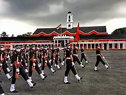 The "Indianisation" of the Indian Army began with the formation of the Prince of Wales Royal Indian Military College at Dehradun, in March 1912, to provide education to the scions of aristocratic and well-to-do Indian families and to prepare selected Indian boys for admission into the Royal Military College, Sandhurst. Cadets were given a King's commission, after passing out, and were posted to one of the eight units selected for Indianisation. Because of the slow pace of Indianisation, with just 69 officers being commissioned between 1918 and 1932, political pressure was applied, leading to the formation of the Indian Military Academy in 1932 and greater numbers of officers of Indian origin being commissioned.[23] On the eve of World War II, the officer corps consisted of roughly 500 Indians holding regular commissions against approximately 3,000 British officers.[24]