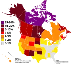 ![]() Indigenous peoples in Canada and the U.S., % of population by area | |