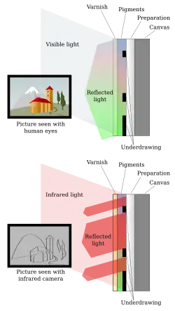 - ^ "IR Reflectography for Non-destructive Analysis of Underdrawings in Art Objects". Sensors Unlimited, Inc. Archived from the original on 2008-12-08. Retrieved 2009-02-20.