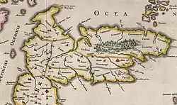 Watson (1926) states that the meaning of Ptolemy's "Eboudai" is unknown and that the root may be pre-Celtic.[37][Note 3] Other early written references include the flight of the Nemed people from Ireland to "Domon and to Erdomon in the north of Alba", which is mentioned in the 12th century Lebor Gabála Érenn.[36] Domon, meaning the "deep sea isle" refers to the Outer Hebrides and Erdomon, meaning "east of, on or near Domon" is thus the Inner Hebrides.[36]