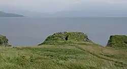 Three stone hearths and traces of red ochre found on Jura and dated to 6000 BC are the earliest stone-built structures found so far in Scotland.[32][33] However, in general the Neolithic sites in the Inner Hebrides lack the scale and drama of those found in Orkney and the Western Isles.[Note 2] There are numerous Iron Age sites including the remains of Dun Ringill fort on Skye, which are similar in layout to that of both a broch and a complex Atlantic roundhouse.[34]