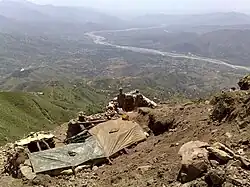 On 13 January 2006, the United States Air Force launched an airstrike on the village of Damadola.[79] The attack occurred in the Bajaur tribal area, about 7 km (4+1⁄2 mi) from the Afghan border, and killed at least 18 people, mostly children and women. The attack again targeted Ayman al-Zawahiri, but later evidence suggests he was not there.[79]