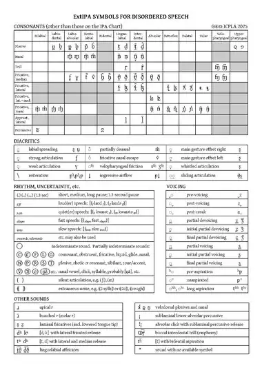 - ^ a b Extensions to the IPA (ExtIPA) chart, International Clinical Linguistics and Phonetic Association, 2025