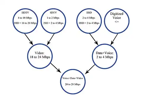 Bandwidth capacity for simultaneously two HDTV streams, two SD streams, additional to HSD and voice